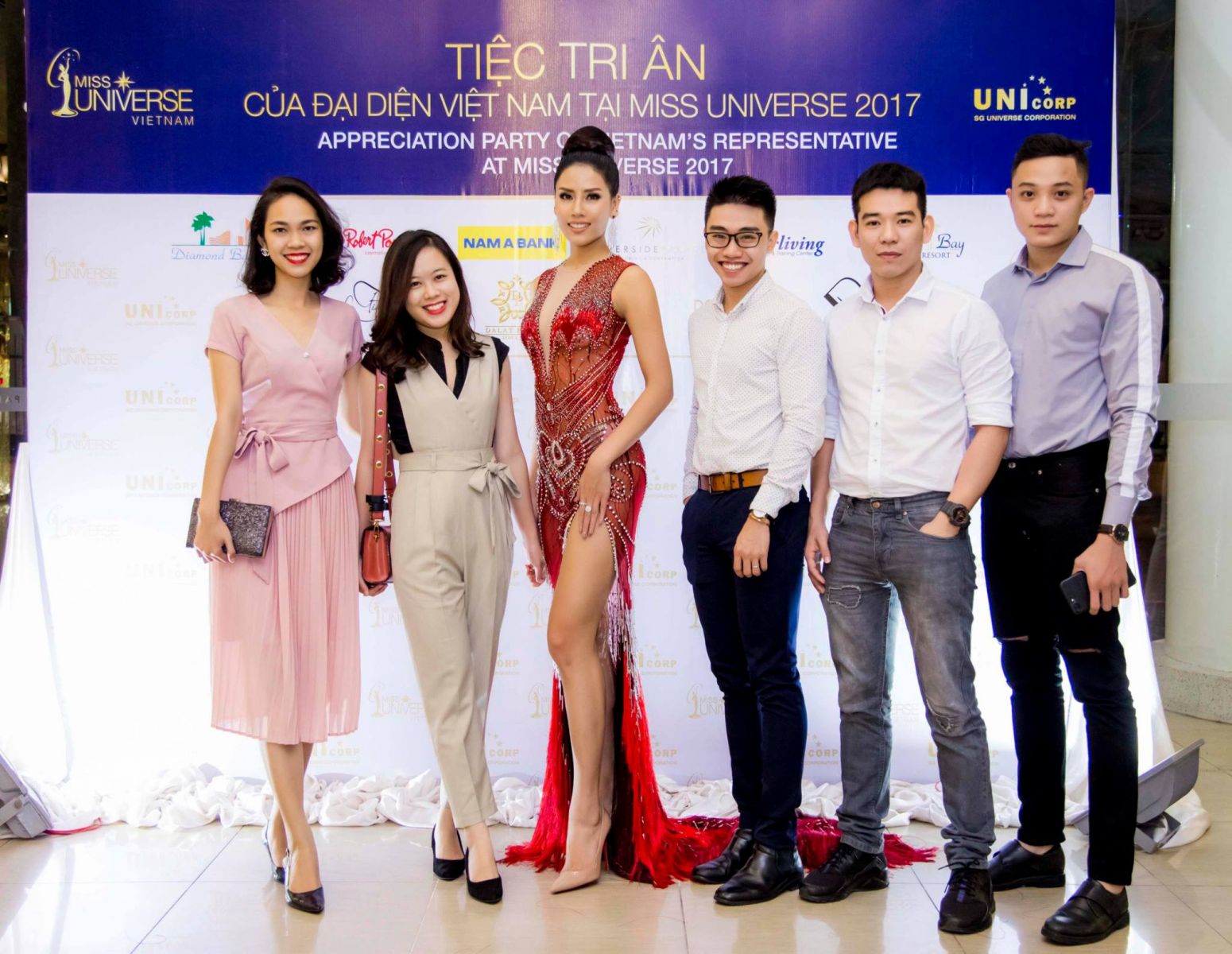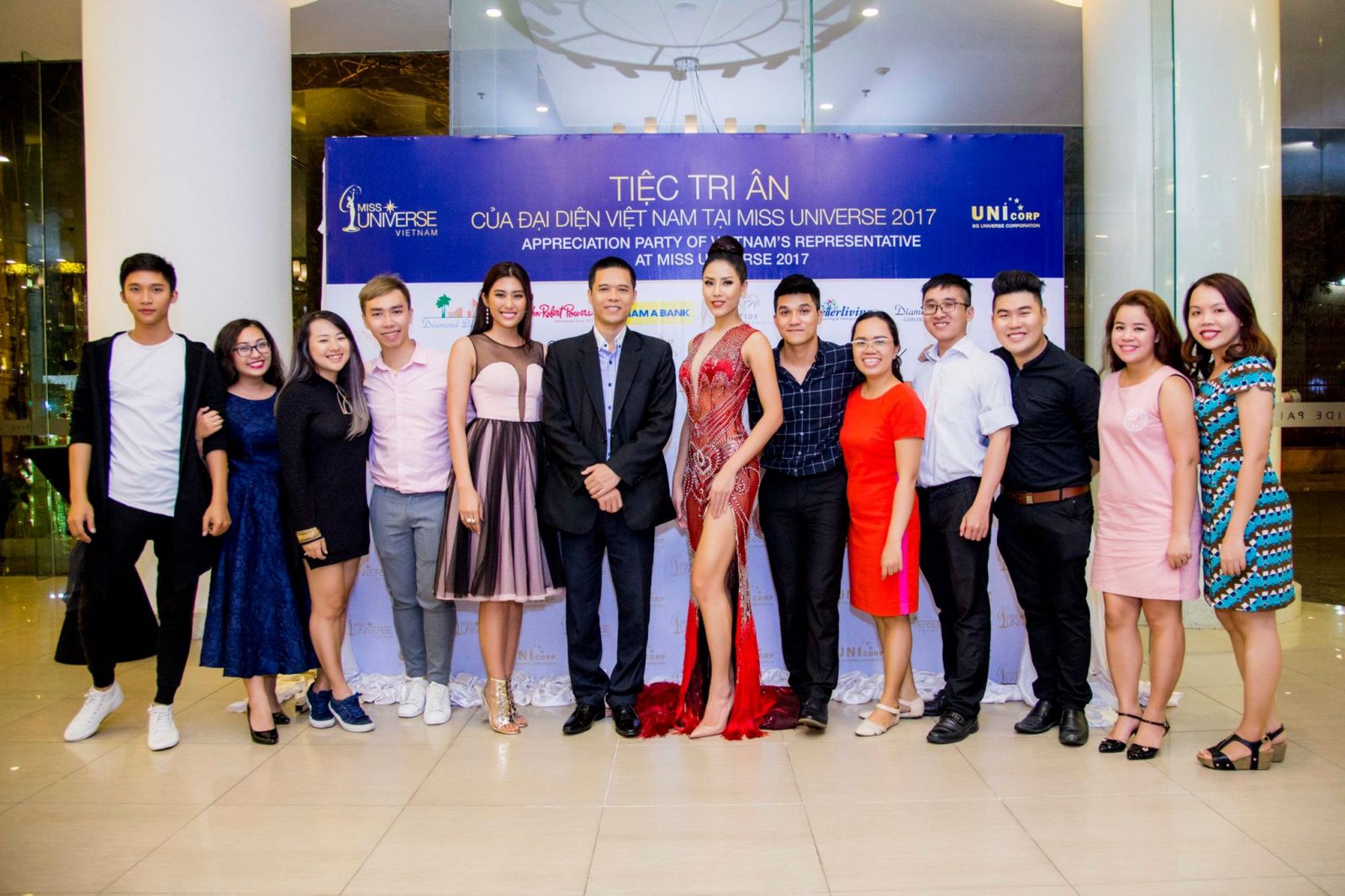 Tối 18/12, tiệc Thank You Party của Á hậu Nguyễn Thị Loan – Đại diện Việt Nam tại Hoa hậu Hoàn vũ Thế giới 2017 đã được tổ chức tại Trung tâm Hội nghị tiệc cưới Riverside Palace. Á hậu diện váy dạ hội màu đỏ rực rỡ của nhà thiết kế Đỗ Long, khoe vẻ tươi tắn đón tiếp các khách mời đến chia vui trong tiệc tri ân này.