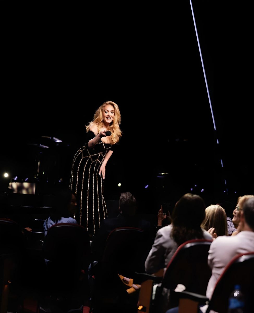 Bắt đầu từ tháng 11.2022, “Weekends with Adele” là một chuỗi show âm nhạc tâm huyết của siêu sao âm nhạc Adele, diễn ra vào các dịp cuối tuần tại khách sạn cao cấp Caesar Palace với giá vé tham dự lên đến vài chục ngàn USD, biến đây trở thành một trong những show diễn đắt giá nhất thế giới. Không chỉ chiều lòng thính giả bởi hàng loạt bản tình ca lãng mạn, nữ ca sĩ luôn xuất hiện với những bộ phục sức sang trọng và cuốn hút. Điểm chung của các thiết kế Adele chọn đều có tông màu đen huyền bí, sắc sảo khi kết hợp cùng nữ trang lấp lánh, đôi môi trầm và mái tóc vàng thương hiệu.