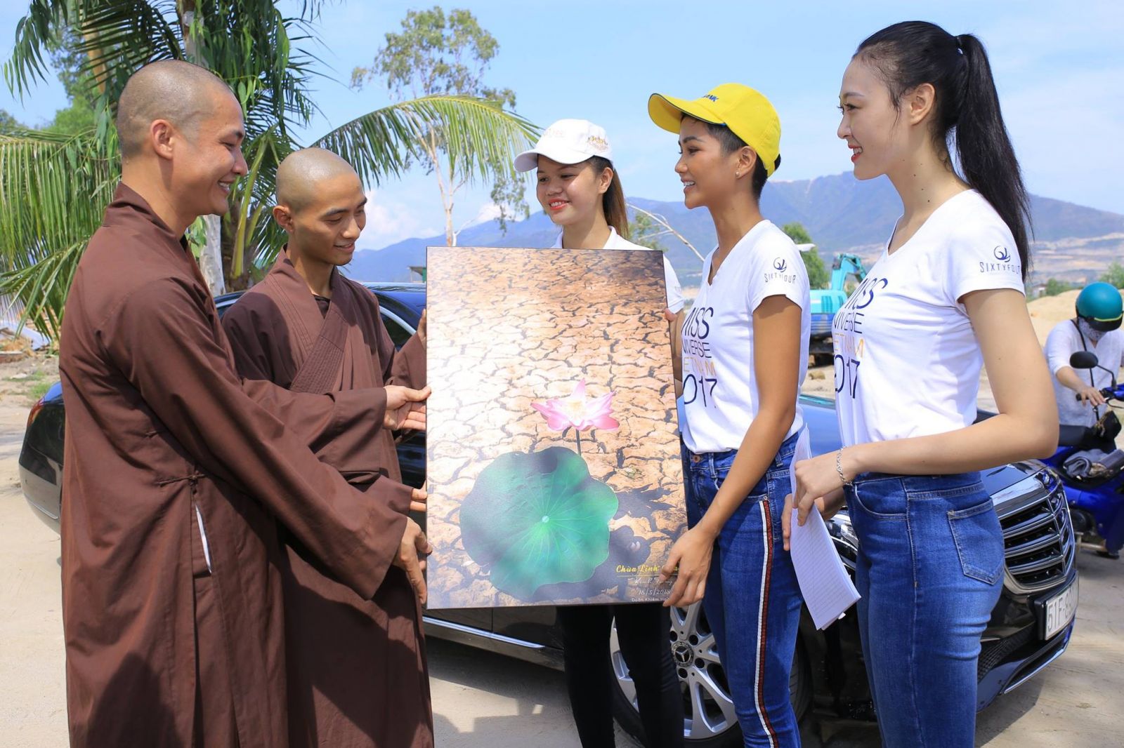 Ngày 18/05, Hoa hậu H’Hen Niê đã tiếp tục cùng tổ chức Hoa hậu Hoàn vũ Việt Nam, người đẹp Minh Thiết – Top 15 Hoa hậu Hoàn vũ Việt Nam 2017, người đẹp Mỹ Trinh – Top 45 Hoa hậu Hoàn vụ Việt Nam 2017 đến thăm và tặng quà cho chùa Linh Quang (Thôn Vĩnh Xuân, xã Vĩnh Thái, Nha Trang, Khánh Hòa). Đây là nơi cưu mang nhiều em nhỏ mồ côi, đồng thời phải hứng chịu nhiều thiệt hại sau cơn bão số 12 vào năm ngoái. Tại đây, đoàn đã trao tặng 200 triệu đồng gồm tiền mặt và nhu yếu phẩm cần thiết cho chùa, nhằm hỗ trợ chi phí trùng tu, sửa sang chùa, giúp các em nhỏ có nơi nượng tựa để yên tâm ổn định cuộc sống.