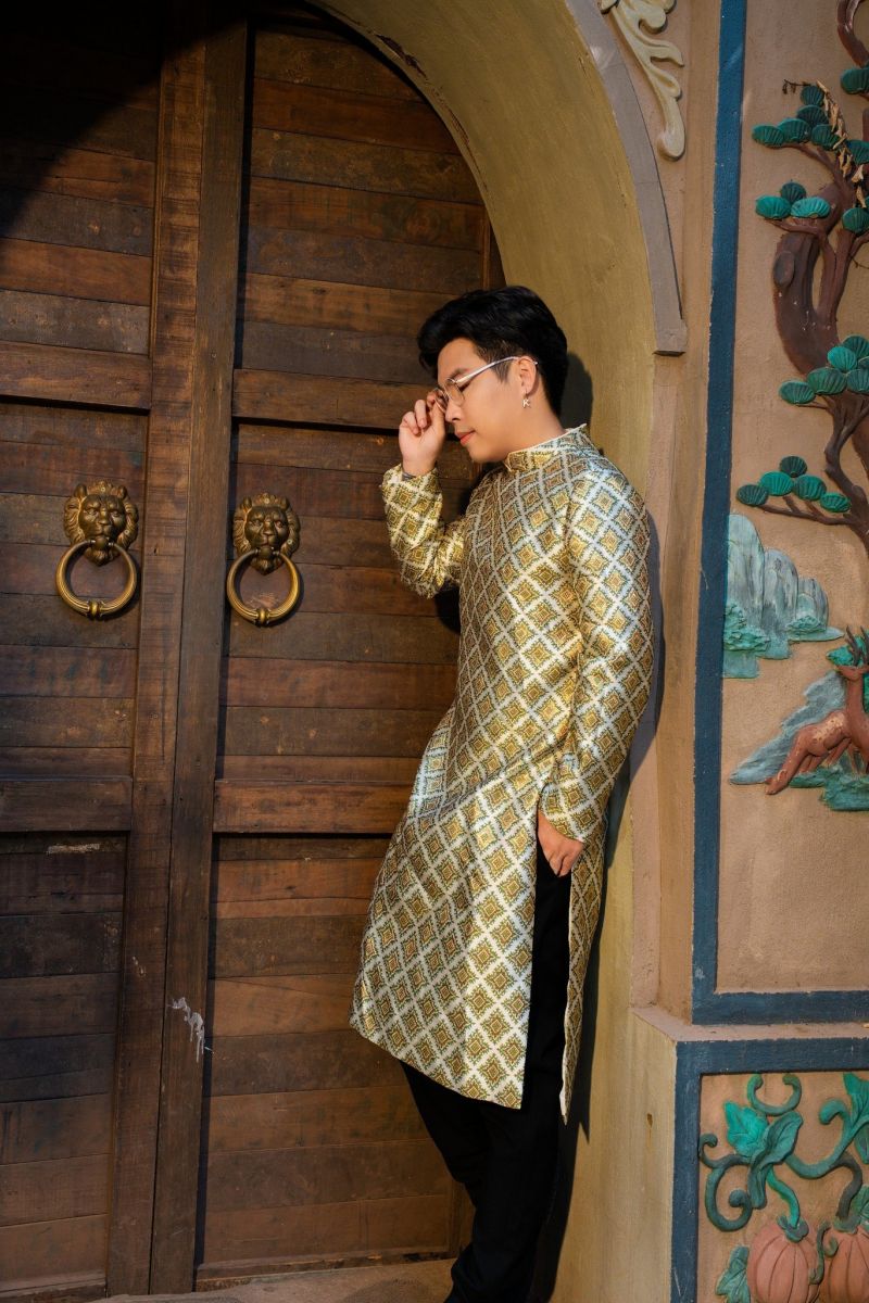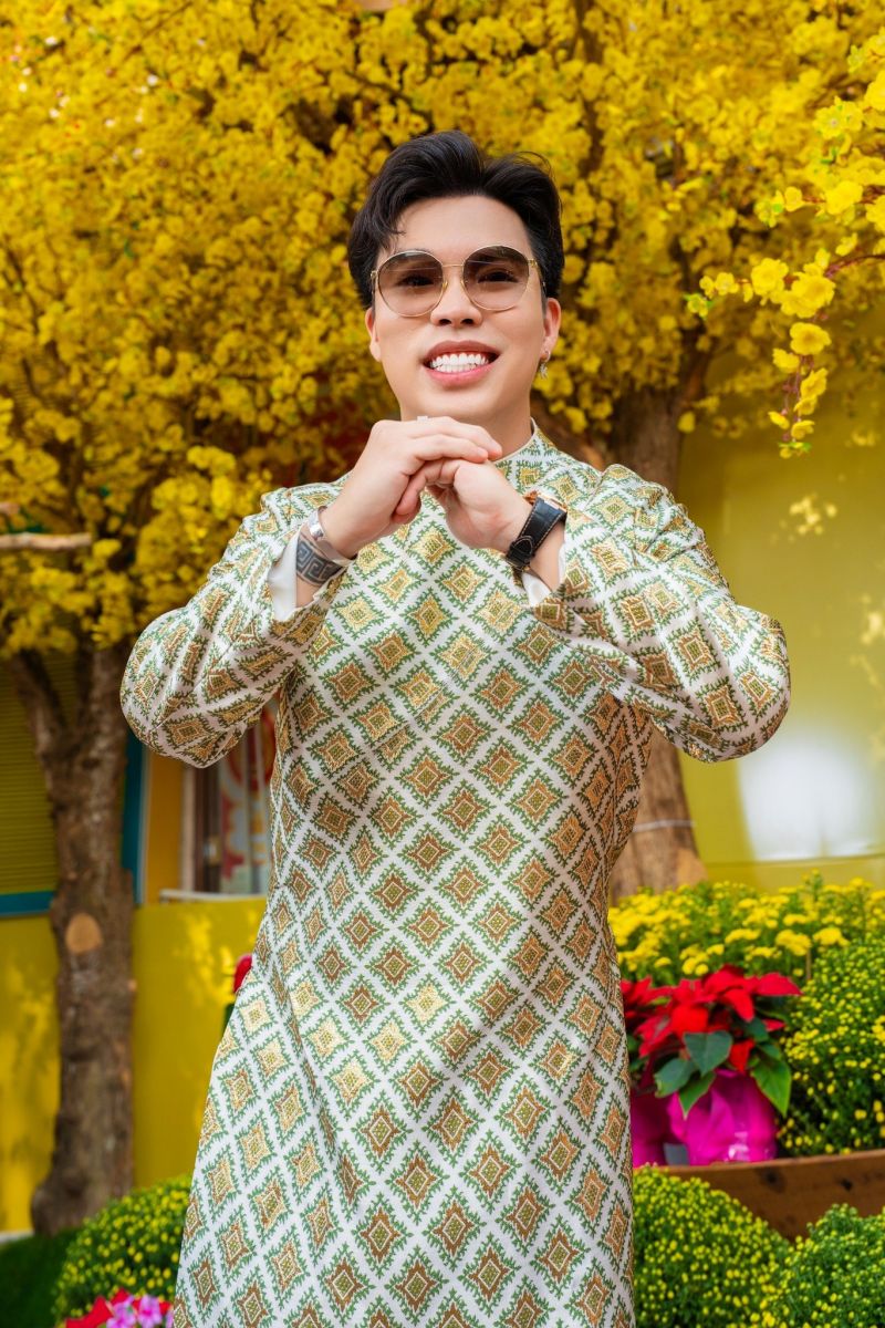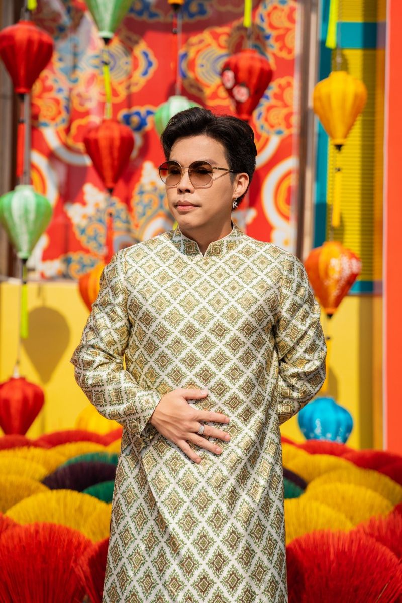 Kevin Toàn cho biết không chỉ dịp tết mà các sự kiện quan trọng anh đều lựa chọn áo dài thể hiện sự trân trọng và niềm tự hào dân tộc. 'Khi mặc nó trên người, tôi thấy mình khác với các bạn đến từ các nước khác, tôi thấy vô cùng tự hào', nam ca sĩ chia sẻ.