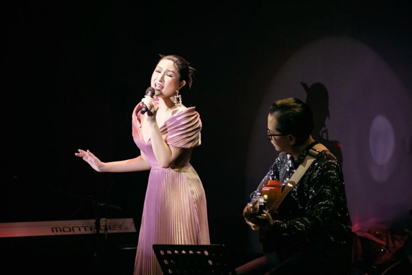 Thuỳ Chi cũng dành thời gian đến mừng Nguyễn Hồng Nhung ra mắt album sau thời gian chuẩn bị. Với nữ ca sĩ, đàn chị là một nghệ sĩ tài năng, nghị lực. “Tôi gặp chị Nhung lần đầu tiên cách đây vài tháng, nhưng không nói chuyện với nhau nhiều. Khi nhận được lời mời của chị ấy, tôi muốn có mặt ở đây để chúc mừng chị. Tôi nói thật chị Nhung rất đẹp, chân phương. Khi nghe chị hát, tôi mừng vì chị đã vượt qua nhiều điều để có ngày hôm nay”, cô bày tỏ.