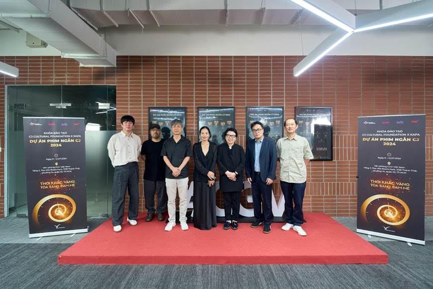 Từ ngày 8-12/7, CJ Cultural Foundation, CJ CGV Việt Nam phối hợp cùng Học viện Điện ảnh Hàn Quốc KAFA (Korean Academy of Film Arts) đã tổ chức thành công khóa đào tạo dành cho Top 5 đạo diễn xuất sắc nhất của Dự án phim ngắn CJ 2024. Khóa học đã mang đến những buổi góp ý - hướng dẫn bổ ích đối với các học viên - bao gồm các bạn trẻ sẽ đảm nhiệm những vai trò như đạo diễn, nhà sản xuất, quay phim… trong 5 dự án được chọn của Dự án phim ngắn CJ 2024.