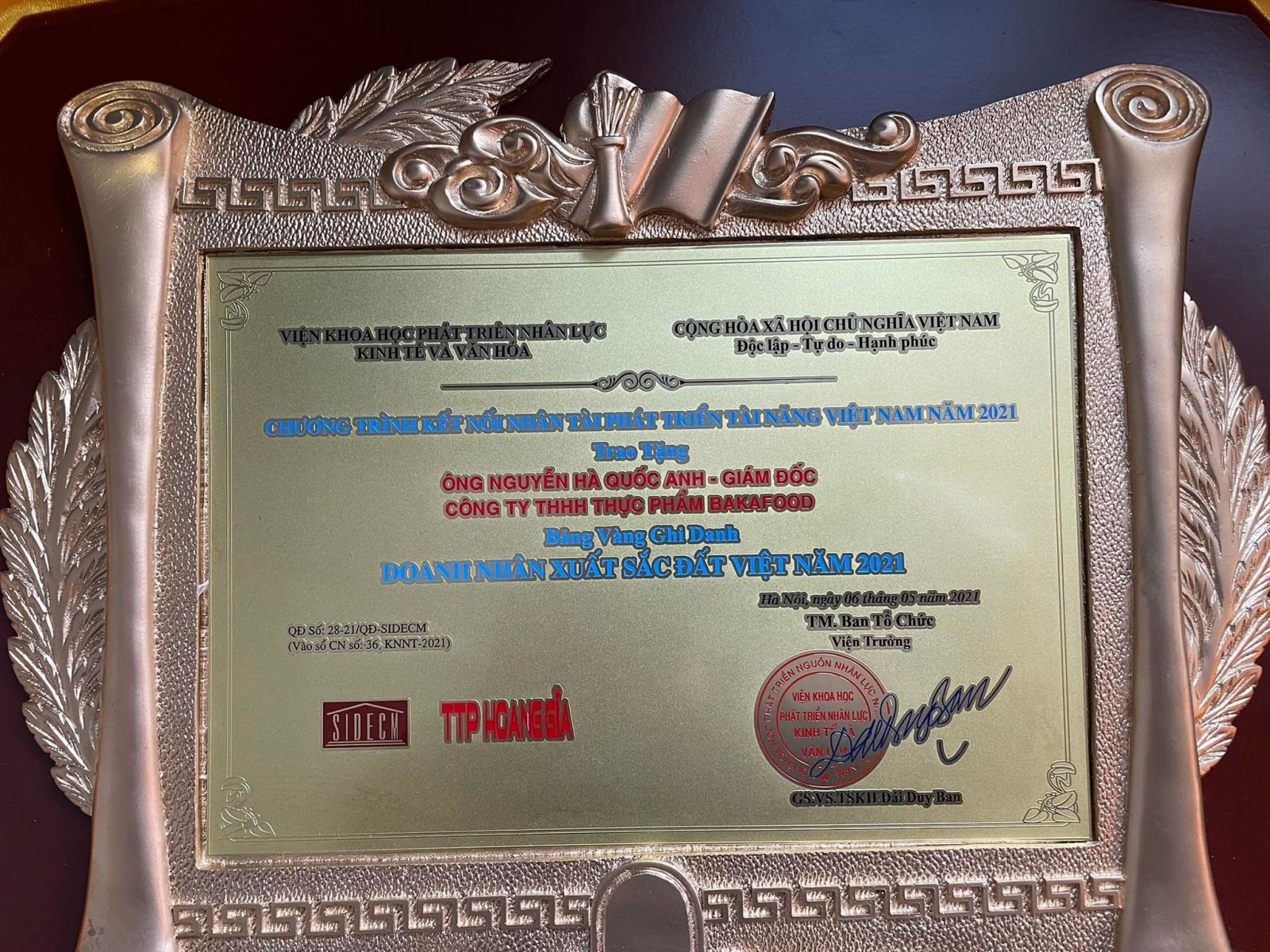 Tại Lễ vinh danh, CEO Nguyễn Hà Quốc Anh nhận danh hiệu Doanh nhân xuất sắc Đất Việt 2021. Đồng thời, thương hiệu thực phẩm sạch BaKa Food được vinh danh Thương hiệu vàng Việt Nam 2021.