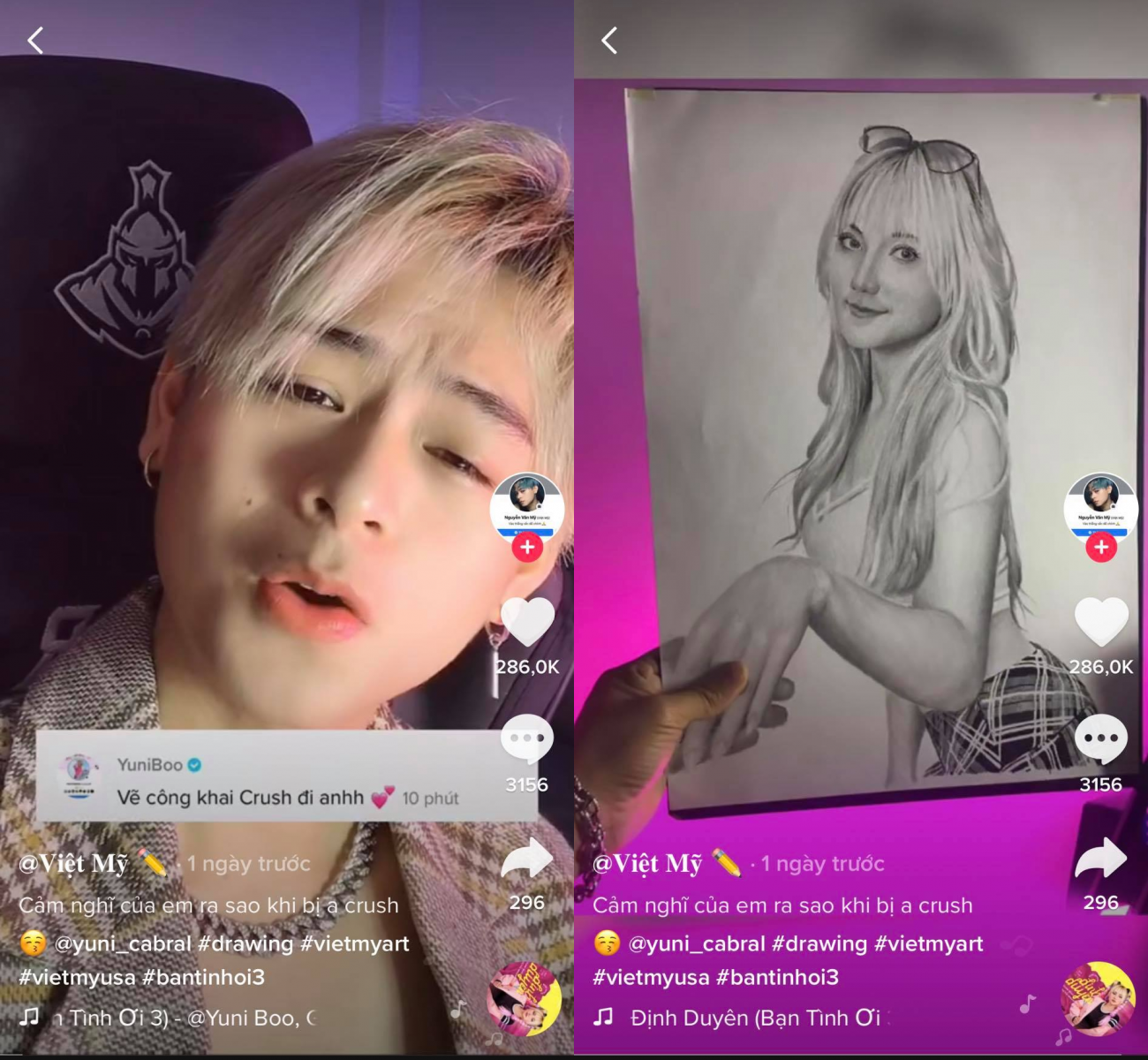 (ĐSVH) Không chỉ còn là những màn “thính nhẹ nhàng" mới đây hoạ sĩ Việt Mỹ đã công khai thừa nhận nàng rapper Yuni Boo chính là “crush" của anh chàng.
