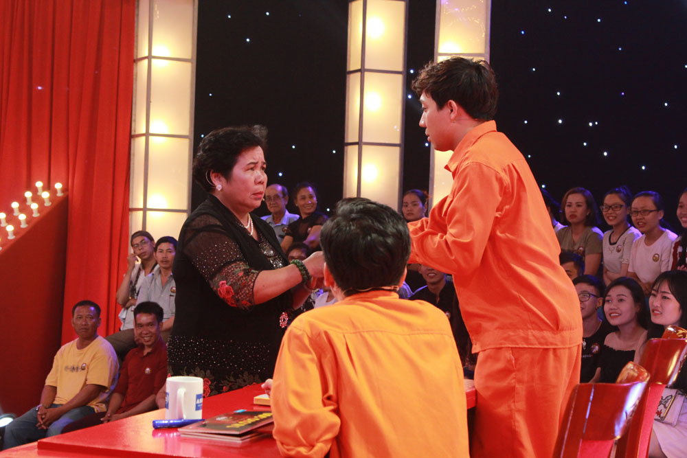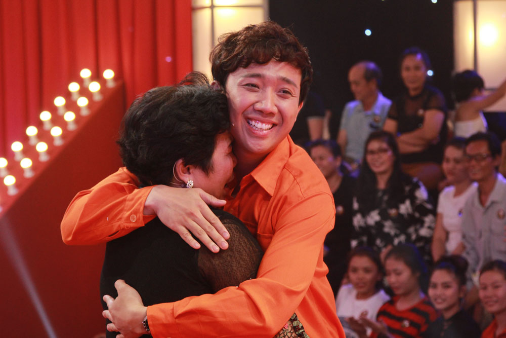 Quá sung sướng, cô bán chè bật khóc trong vòng tay của Tiến Luật. Trấn Thành cũng rưng rưng cảm động theo.