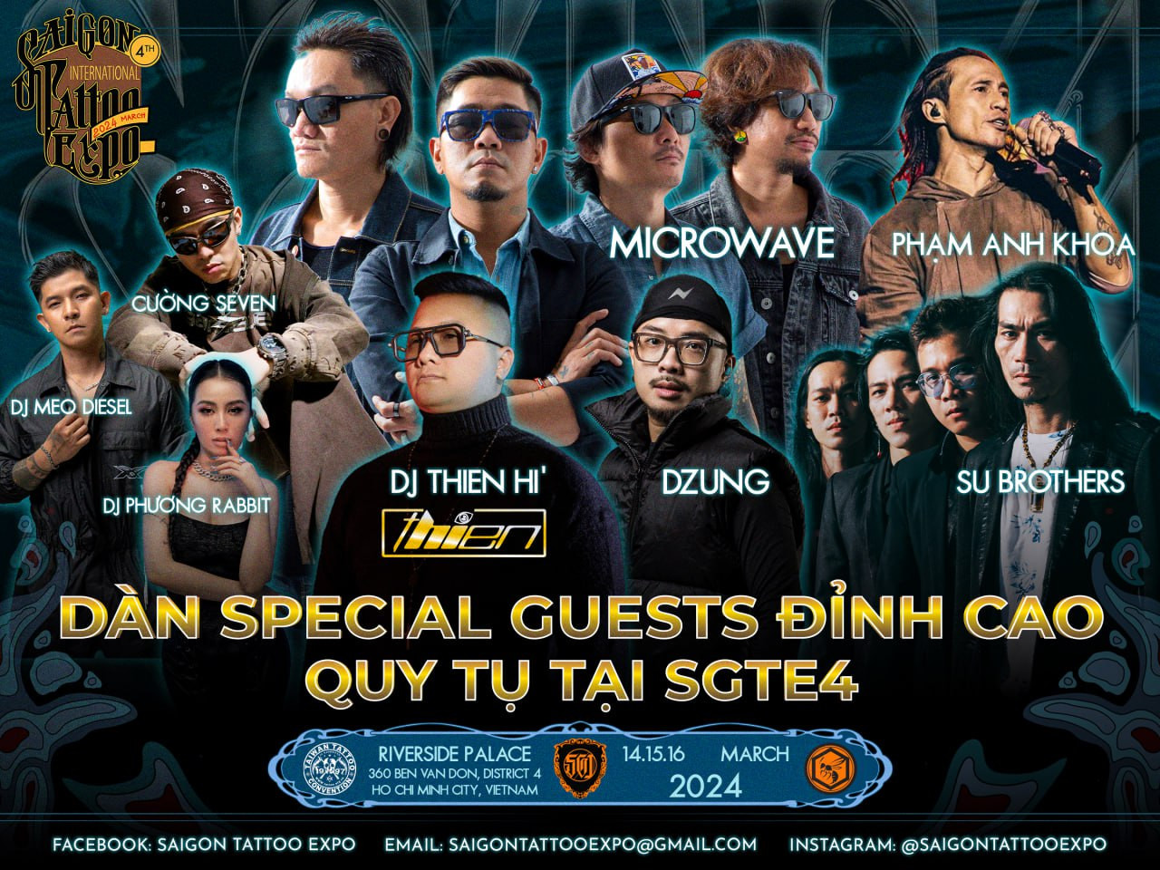 (ĐSVH) Saigon Tattoo International Expo 2024 diễn ra vào ngày 14,15 và 16/3/2024 tại Riverside Bến Vân Đồn, quận 4 (TP.HCM).