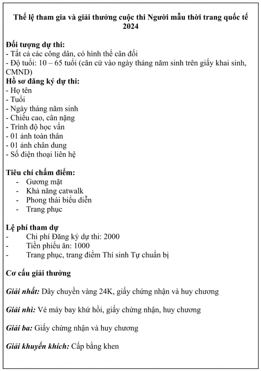 Nguồn: Cuộc thi Người Mẫu Thời Trang Quốc Tế