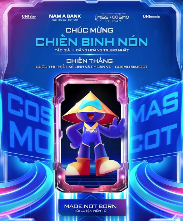 Vượt qua nhiều đối thủ nặng ký, Mascot "Chiến Binh Nón" của tác giả Đặng Hoàng Trung Nhật (Chiếc Lá) đã xuất sắc giành chiến thắng chung cuộc Cuộc thi Thiết kế Linh vật Hoàn Vũ (Cosmo Mascot), trở thành linh vật chính thức của Hoa Hậu Hoàn Vũ Việt Nam - Miss Cosmo Vietnam 2023.