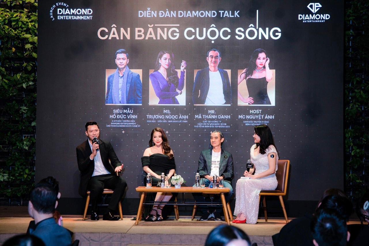 Trong khuôn khổ chương trình, diễn đàn “Diamond Talk: Cân bằng cuộc sống” với sự chia sẻ của: Hoa hậu, diễn viên, NSX phim Trương Ngọc Ánh; Siêu mẫu Hồ Đức Vĩnh – Giám đốc thương hiệu Diamond Entertainment, Chủ tịch CLB Bóng đá FC Nghệ sĩ; Ông Mã Thanh Danh – Chủ tịch công ty cổ phần tư vấn quốc tế CIB, Phó TGĐ Tập đoàn KIDO. Với dự dẫn dắt của MC Nguyệt Ánh, các diễn giả đã có những chia sẻ đầy thú vị cũng như câu chuyện xung quanh việc cân bằng.