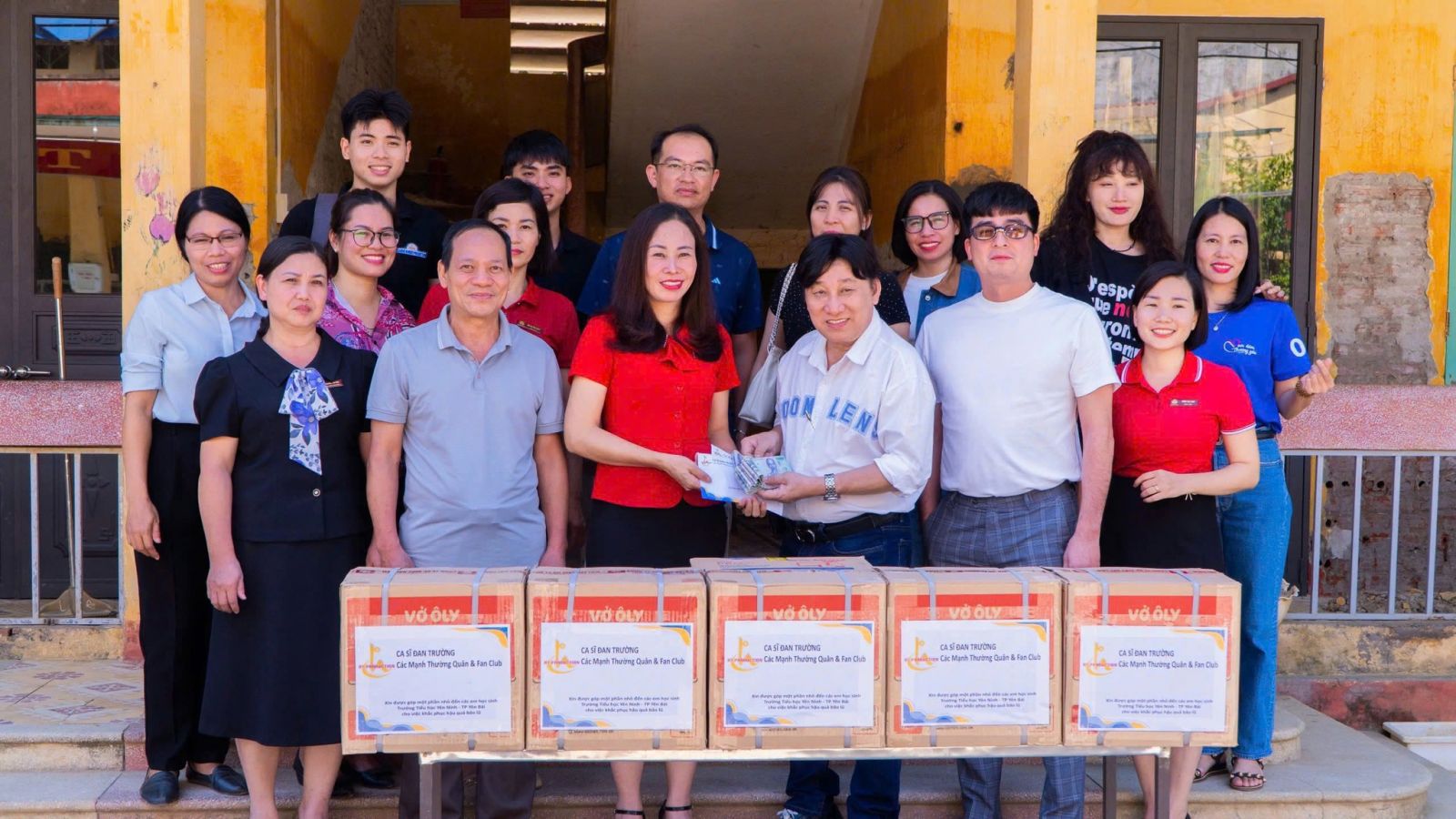 Trong chuyến đi, đoàn đã có mặt tại huyện Trấn Yên, Trường tiểu học Yên Ninh và phường Hồng Hà để trao tiền, nhu yếu phẩm cần thiết, động viên tinh thần bà con vượt qua những khó khăn, mất mát sau mưa bão.