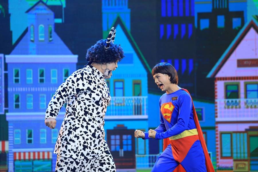 Hữu Đằng khiến khán giả không khỏi thích thú khi hóa thân thành anh chàng đóng thế ốm yếu, nhỏ bé, đánh nhau với chú bò sữa khổng lồ. Từng mảng miếng nhỏ trong tiết mục đều rất duyên dáng, hài hước tạo ra tiếng cười cho người xem.