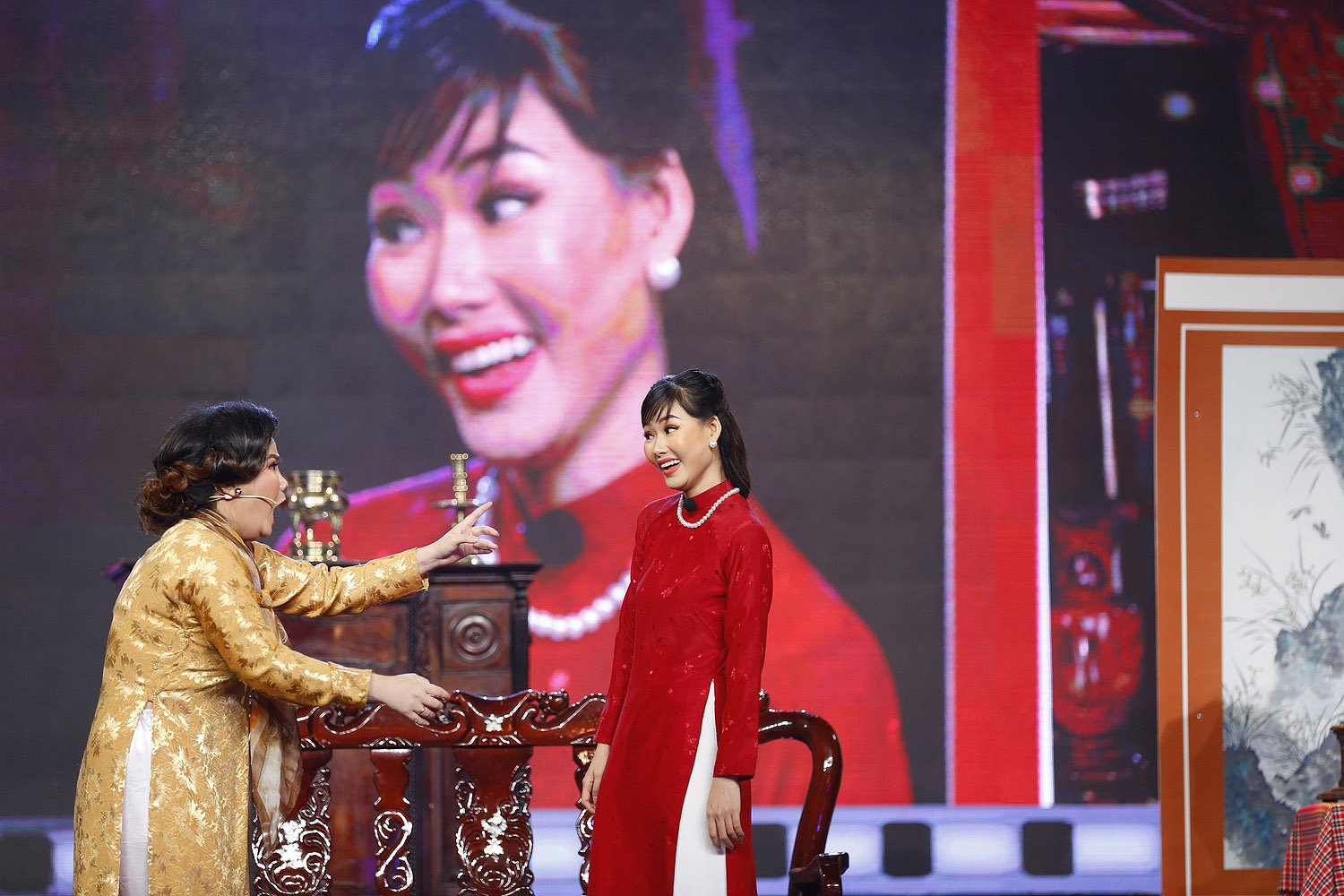 Tiểu phẩm kết thúc với nụ cười và ánh mắt đáng sợ của Quỳnh khi thấy bà hội đồng mất cháu, cô vợ lẽ đau đớn mất con.