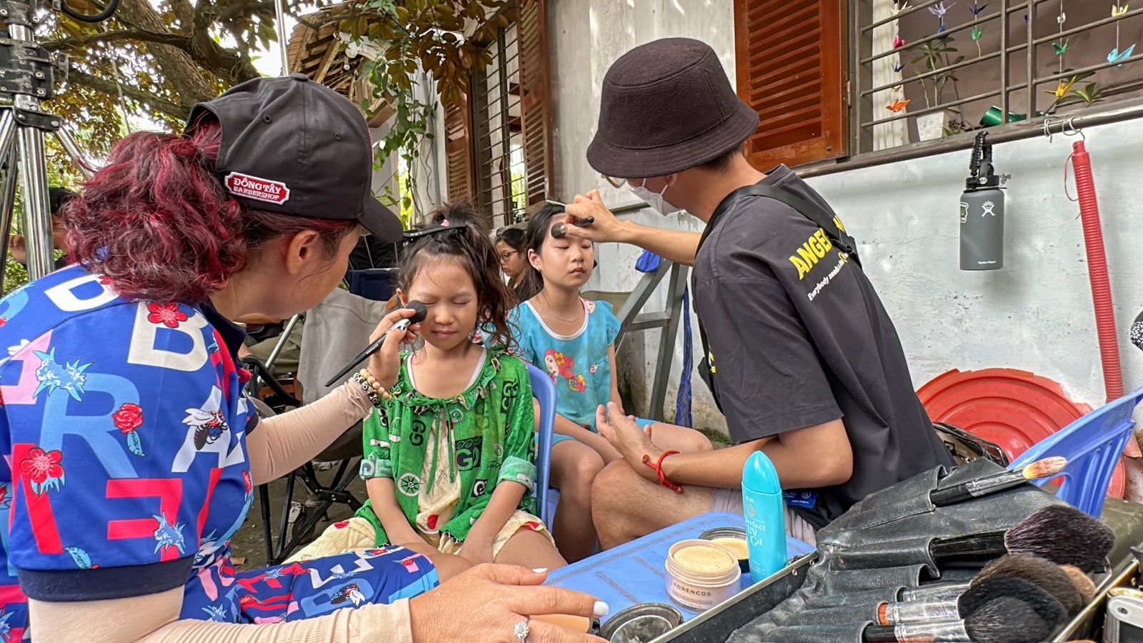 Đến trường quay, cả Sunny lẫn Cherry đều rất nghiêm túc và chuẩn bị kỹ lưỡng khi trang điểm lem luốc, đen đúa, quần áo sờn cũ từ đầu tới chân. Cảnh phim của hai bé tuy ngắn nhưng vẫn đòi hỏi diễn xuất nhập tâm. Khi đến mời mua vé số nhưng bị mắng, Sunny đã bật khóc rất đạt. Không hổ danh là con nhà nòi của Lý Hải, cảnh phim chỉ cần quay một lần là xong luôn. Thậm chí, cô bé còn đóng mượt đến mức chỉ cần hô “diễn” là có thể rơi nước mắt ngay.
