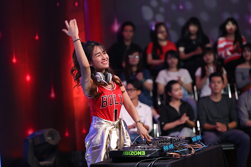Đến cả MC Trường Giang cũng phải thú nhận bản thân cũng phải mê mẩn Trang Moon khi đứng sau cánh gà xem tiết mục biểu diễn của nữ DJ xinh đẹp và tài năng này.