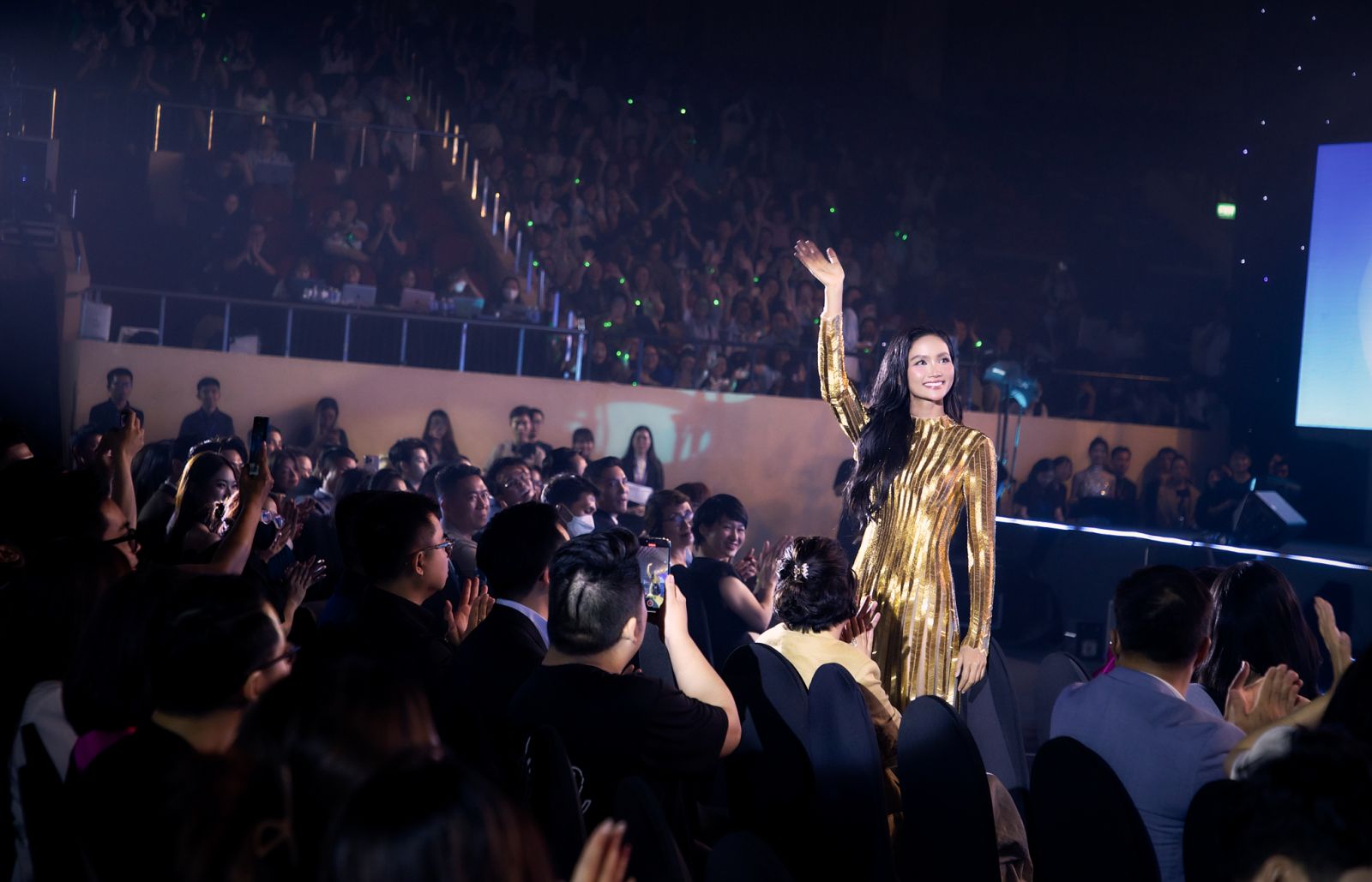 Xuất hiện trên thảm đỏ trong trang phục vàng lấp lánh của NTK Lê Thanh Hoà, H’Hen Niê nhanh chóng thu hút sự chú ý của khán giả. Trước đó, cô đã đảm nhận vai trò first face cho một show diễn thời trang và lập tức di chuyển đến địa điểm diễn ra chương trình.