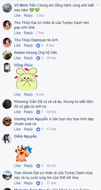 Với chia sẻ trên Hứa Vĩ Văn đã làm cho người hâm mộ anh không khỏi xúc động. Được biết chương trình Turkey Dash năm nay sẽ được diễn ra vào 15h30 Chủ nhật, ngày 19 tháng 11 năm 2017 tại Tân Trào, Phú Mỹ Hưng, quận 7, Thành phố Hồ Chí Minh. Dự kiến sẽ có 5000 người tham gia chạy bộ, trong đó có hơn 100 người nổi tiếng, và các cơ quan truyền thông cùng tham gia chương trình.