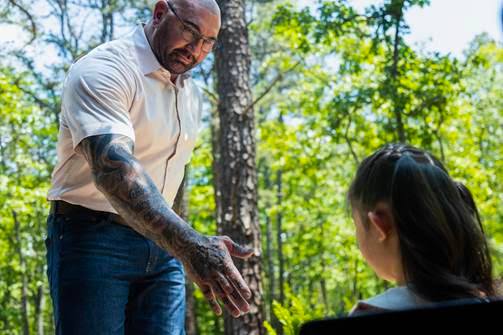 Vào vai thủ lĩnh của nhóm 4 người lạ mặt xuất hiện tại căn nhà gỗ, nam diễn viên tới từ loạt phim ăn khách Guardians of the Galaxy Dave Bautista hứa hẹn sẽ mang đến một màn trình diễn mới lạ. Từng là một đô vật chuyên nghiệp nổi tiếng thế giới, anh thường đảm nhận những nhân vật hành động, nhưng với Tiếng Gõ Ở Căn Nhà Gỗ, đây là kiểu vai diễn mà anh luôn chờ đợi. Thoát ra khỏi những khuôn mẫu mặc, anh đã được thử sức với vai diễn có thế giới nội tâm phức tạp hơn để có thể khẳng định được khả năng diễn xuất của bản thân.