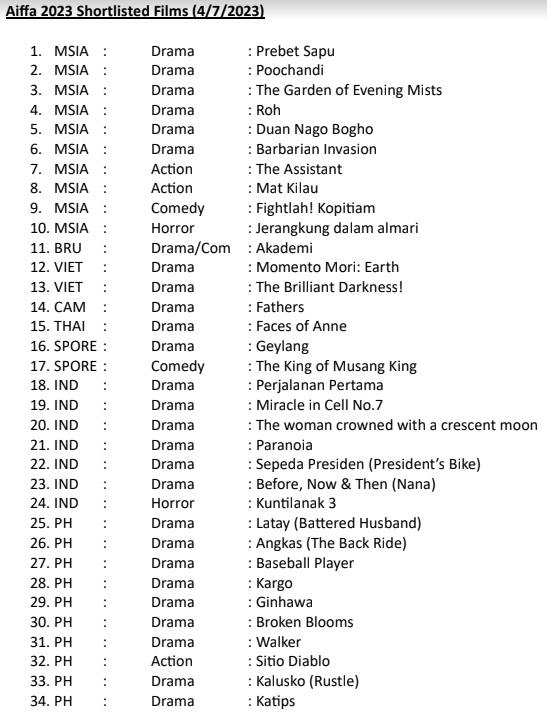 Danh sách 34 bộ phim lọt vào vòng tranh giải chính thức của LHP Quốc tế AIFFA 2023