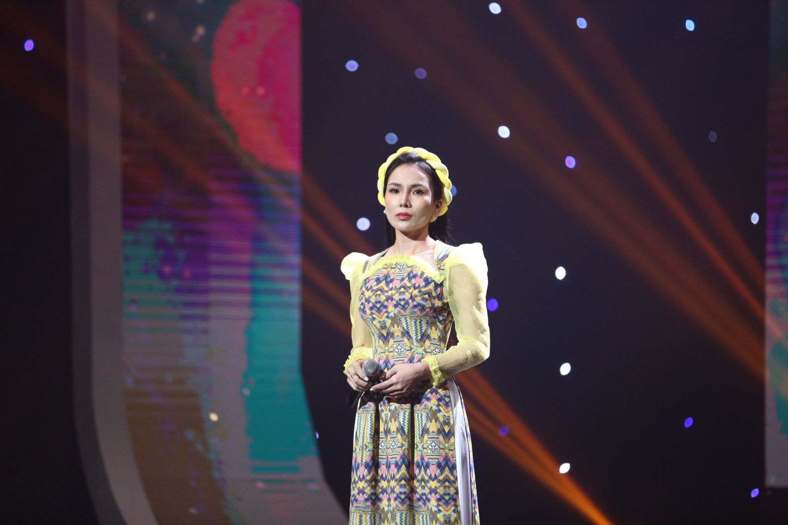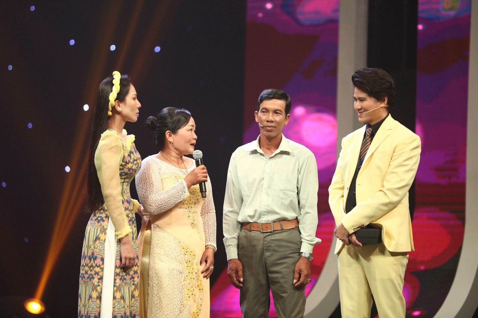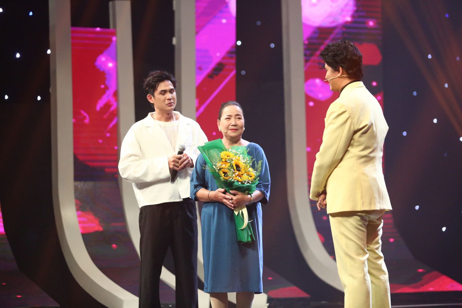 MC Vũ Mạnh Cường giúp ca sĩ Hoàng Phương Linh nói lời cảm ơn cha