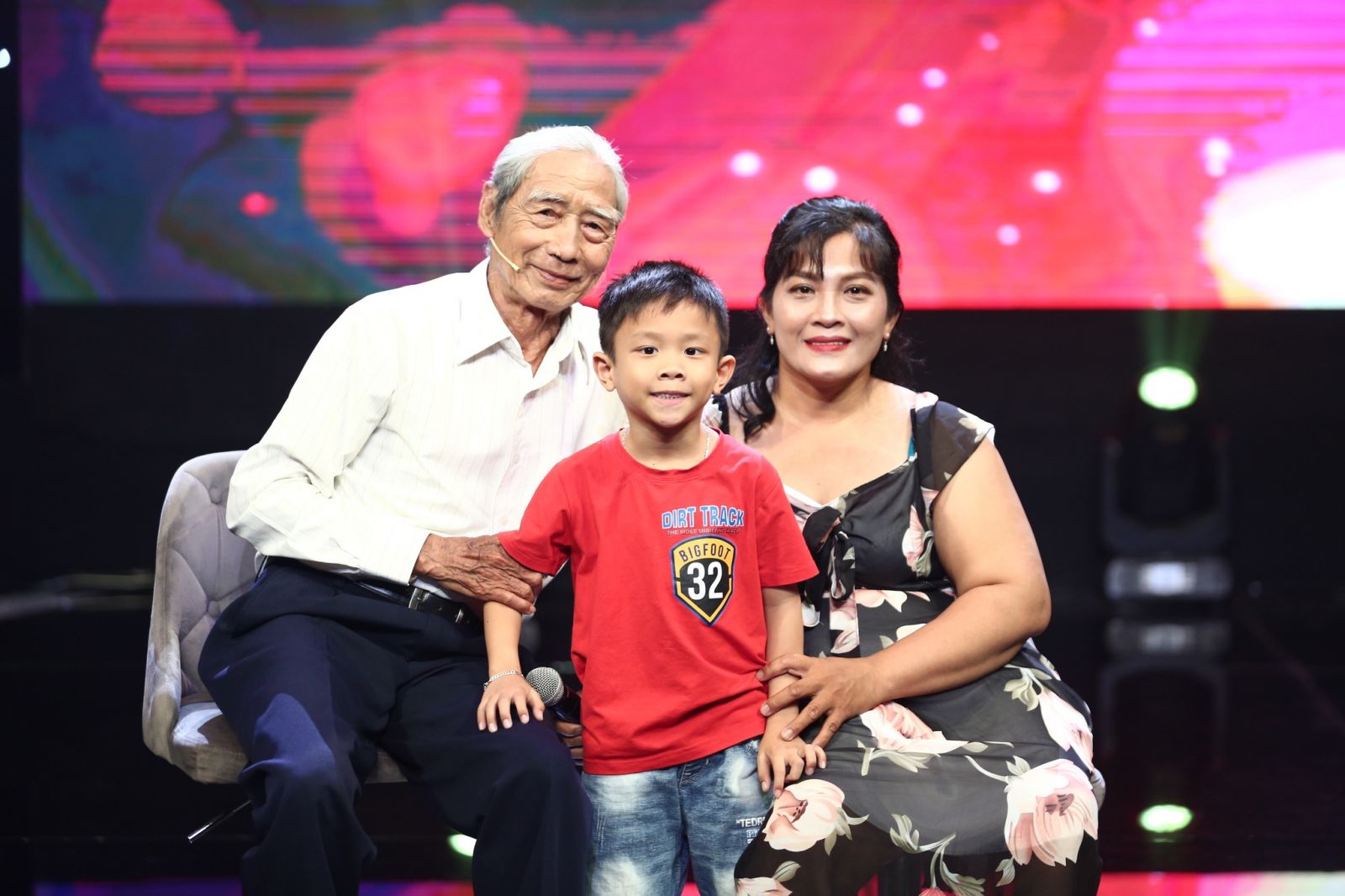Đặc biệt, hình ảnh cậu bé 6 tuổi con chị Lệ Huyền chạy lên sân khấu ôm chầm bác Trần Hoàng Minh và gọi ông ngoài khiến cho nam MC vô cùng thích thú. Anh gọi đó là sự tiếp nối về lòng biết ơn từ thế hệ này đến thế hệ khác và đó cũng là một cách giáo dục tốt cho một đứa trẻ.