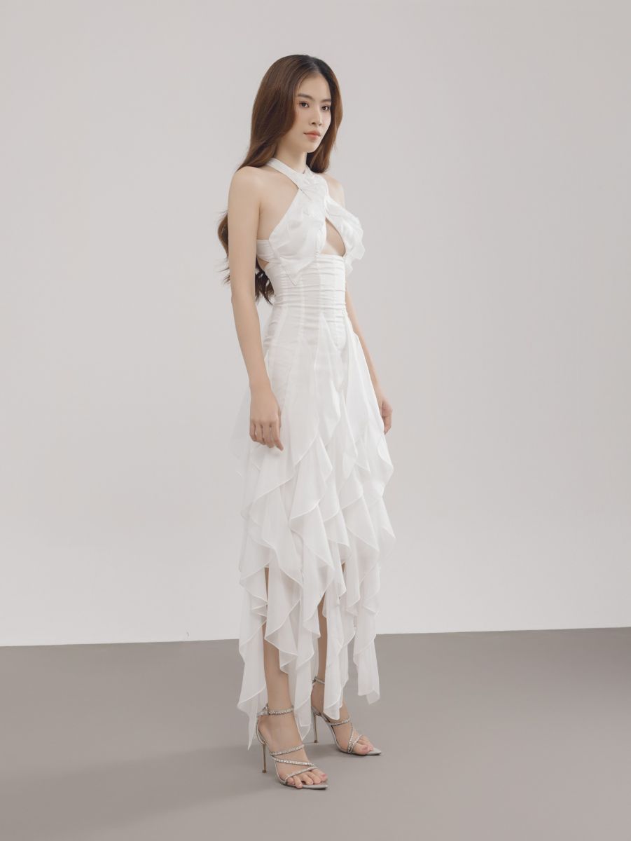 Ngoài ra, vài trang phục cut-out, xẻ tà cá tính trong bộ sưu tập giúp Nam Anh khéo khoe vẻ đẹp hình thể của mình. Đặc biệt, các thiết kế phối hợp màu đen - trắng khéo léo giúp loại bỏ đi sự đơn điệu của set đồ, nhưng vẫn tôn lên vẻ sang chảnh của người đẹp.