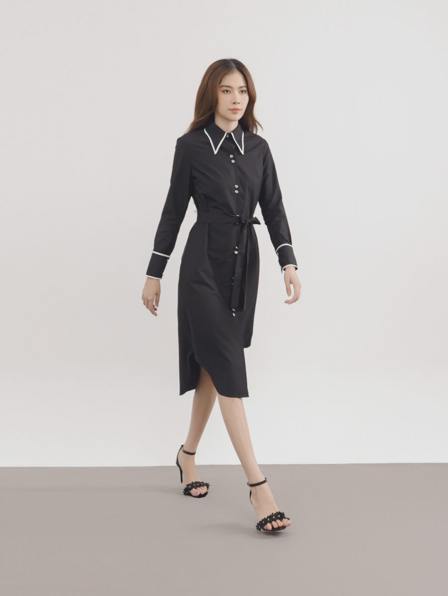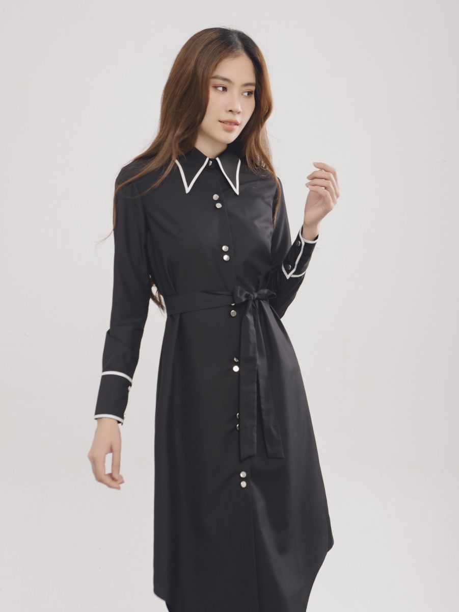 Điển hình như phần thắt lưng độc đáo trong set áo sơ mi cùng chân váy tông đen, bộ váy đen xếp ly hoặc suôn dài có phần tạo hình tinh tế tôn dáng Nam Anh nói riêng và người mặc nói chung. Tương tự, người đẹp tỏa sáng rực rỡ trong bộ đầm trắng tinh khôi thêm phần nổi bật nhờ chiếc nơ bắt mắt đính ở eo hay chi tiết hở vai đầy quyến rũ.