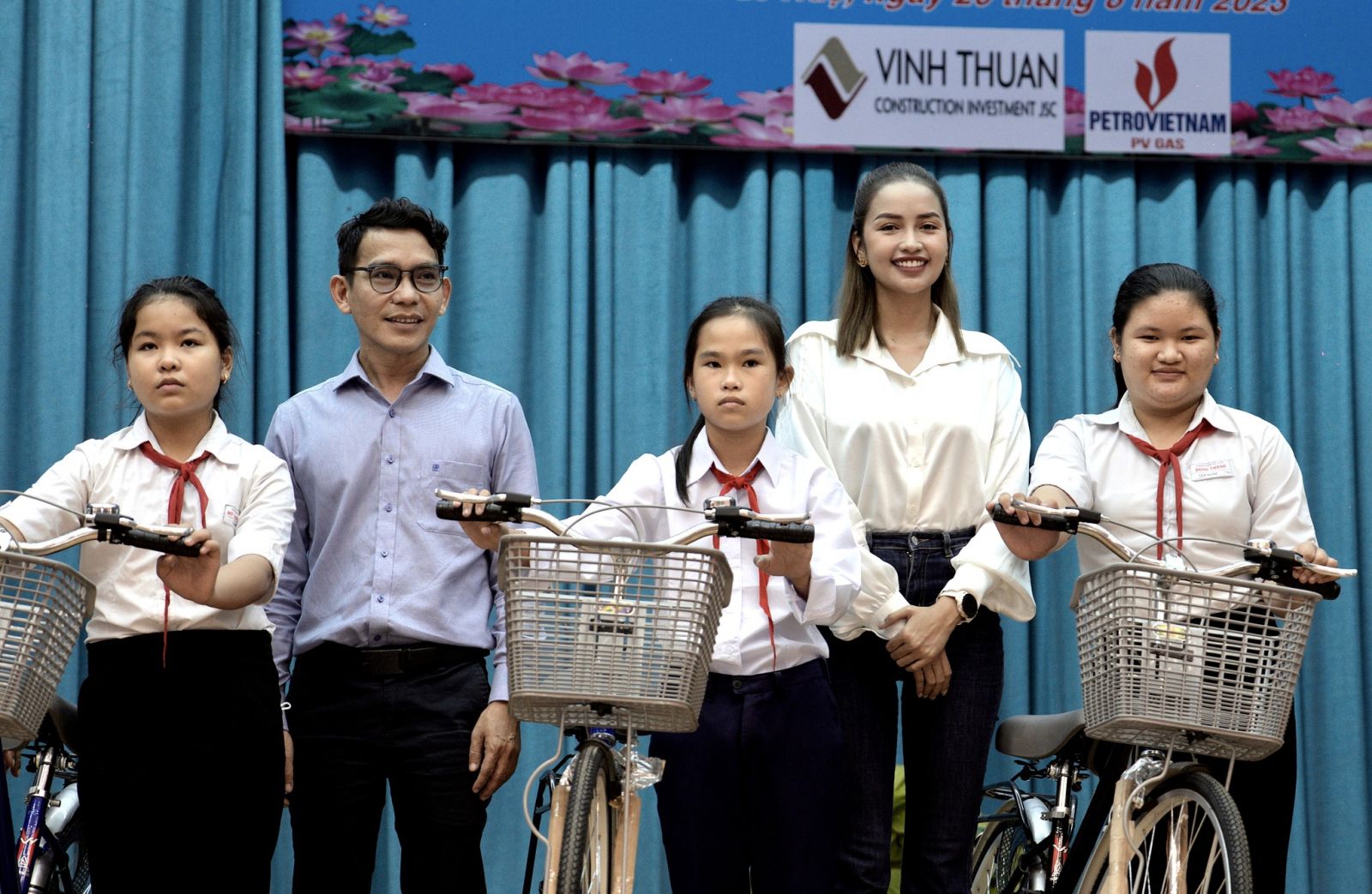 Vốn quan tâm đến giáo dục và trẻ em, Ngọc Châu đã đồng hành cùng Tổ chức Hoa hậu Hoàn Vũ Việt Nam gửi tặng những chiếc xe đạp đến học sinh nghèo hiếu học huyện Đức Huệ, tỉnh Long An, giúp hành trình đến trường của các em trở nên nhẹ nhàng, thuận lợi hơn. Đây cũng là phần thưởng đáng quý cho những nỗ lực ham học và theo đuổi con chữ của các em học sinh khó khăn trên địa bàn. Trước thềm năm học mới, Hoa hậu Ngọc Châu dành nhiều lời chúc, động viên tinh thần học tập cũng như tiếp thêm động lực để các em thêm vững tin bản thân và tri thức. Cô nhận được sự chào đón nồng nhiệt của người dân cũng như những cái ôm ấm áp từ các em học sinh trong chuyến trao quà.