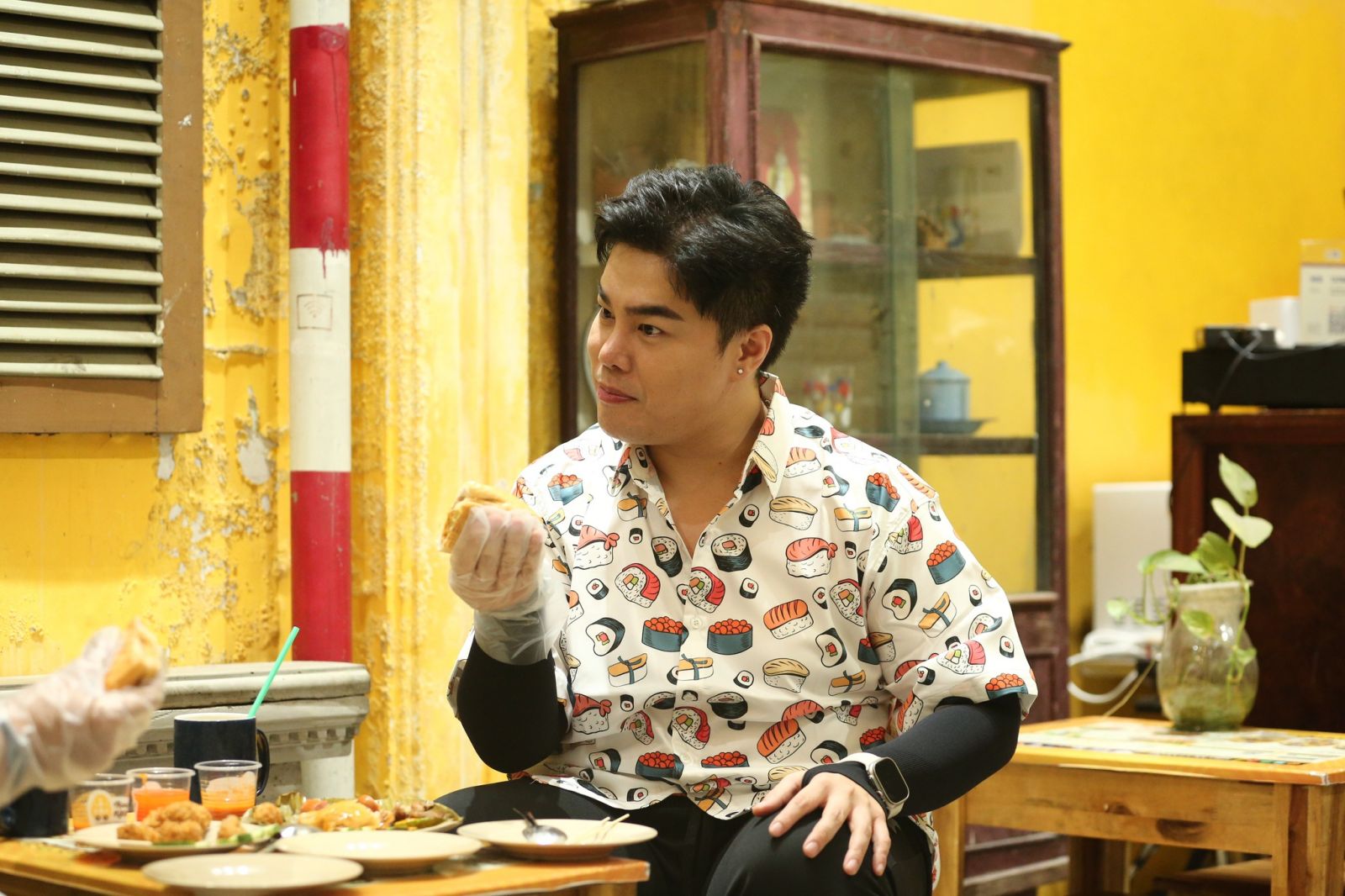 Mở đầu buổi tiệc hôm nay, Nguyễn Đình Vũ gọi “sương sương” tất cả món có trong thực đơn của quán khiến MC Hoàng Rapper bất ngờ đến mức “đứng hình”. Được thưởng thức các món ngon đậm đà hương vị Hà Nội ngay tại TP. HCM khiến chủ nhân ca khúc “Sao hay ra dẻ quá” liên tục tấm tắc khen ngợi.
