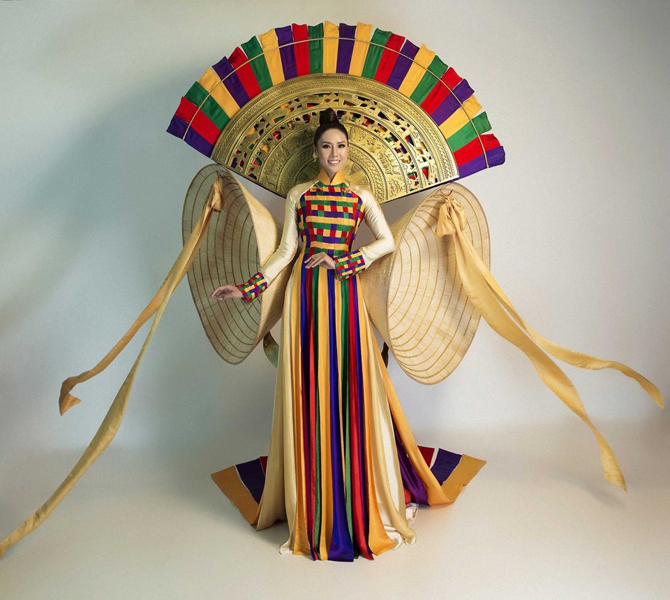 (ĐSVH) Bộ trang phục dân tộc Á hậu Nguyễn Thị Loan mang đến cuộc thi Hoa hậu Hoàn vũ 2017 năm nay có tên gọi “Hồn Việt”. Bộ trang phục được lấy cảm hứng từ những hình ảnh đậm nét truyền thống dân tộc Việt Nam như áo dài, nón lá, trống đồng.