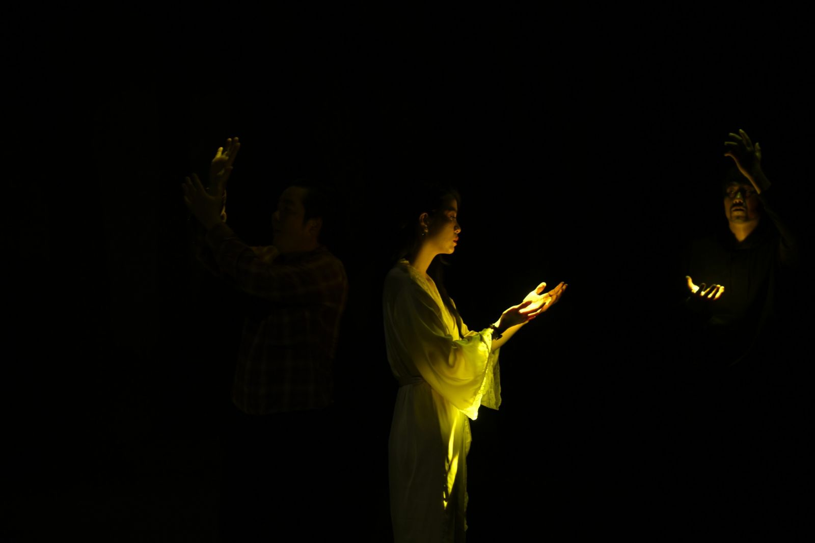 Kịch ‘Đêm Vượn Hú’ ngay phút mở màn đã chứng tỏ dụng công của ekip sáng tạo, đạo diễn, mỹ thuật về xây dựng kết cấu sân khấu; khiến khán giả được gói trọn trong không gian rừng sâu. Hoặc sau đó, có lớp diễn, những lời thú tội được khoét sâu hơn nhờ độ chủ động sắp đặt ánh sáng đầy mê hoặc. Đạo diễn – nghệ sĩ Chánh Trực công nhận quyết định dàn dựng trở lại Đêm Vượn Hú sau gần 10 năm mang lại nhiều lợi thế lớn. Thời gian 10 năm giúp anh đủ chiêm nghiệm về những phân cảnh, bóc tách tâm lý kỹ càng hơn của từng tuyến nhân vật. Những kinh nghiệm dàn dựng ở tác phẩm năm 2015 là nền tảng vững chắc để phát triển thêm thiết kế sân khấu, sáng tạo hơn đường dây di chuyển của từng nhân vật, kể các các diễn viên vào vai ‘bóng ma’; từ đó làm dày thêm trải nghiệm thưởng thức trong không gian sân khấu đặc thù này.