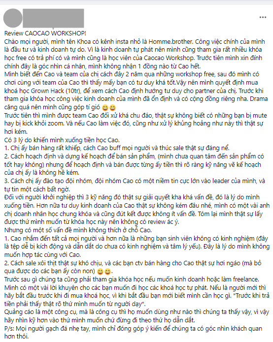 Nhiều học viên của Caocaogram lên tiếng "vạch trần" khóa học xây dựng thương hiệu