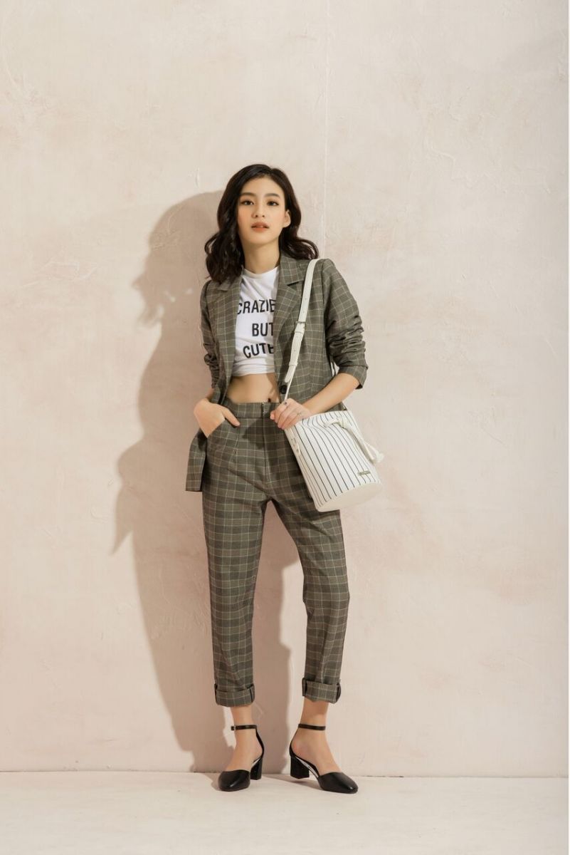 Ngoài ra những chiếc áo blazer caro hottrend kết hợp với áo thun in sẽ là lựa chọn không thể hoàn hảo hơn cho những cô nàng thành thị. Đặc biệt, điểm nhấn của bộ trang phục chính là mẫu giày đế thấp, kín mũi vừa thuận tiện cho việc di chuyển, vừa tạo sự tự tin cho người mặc.