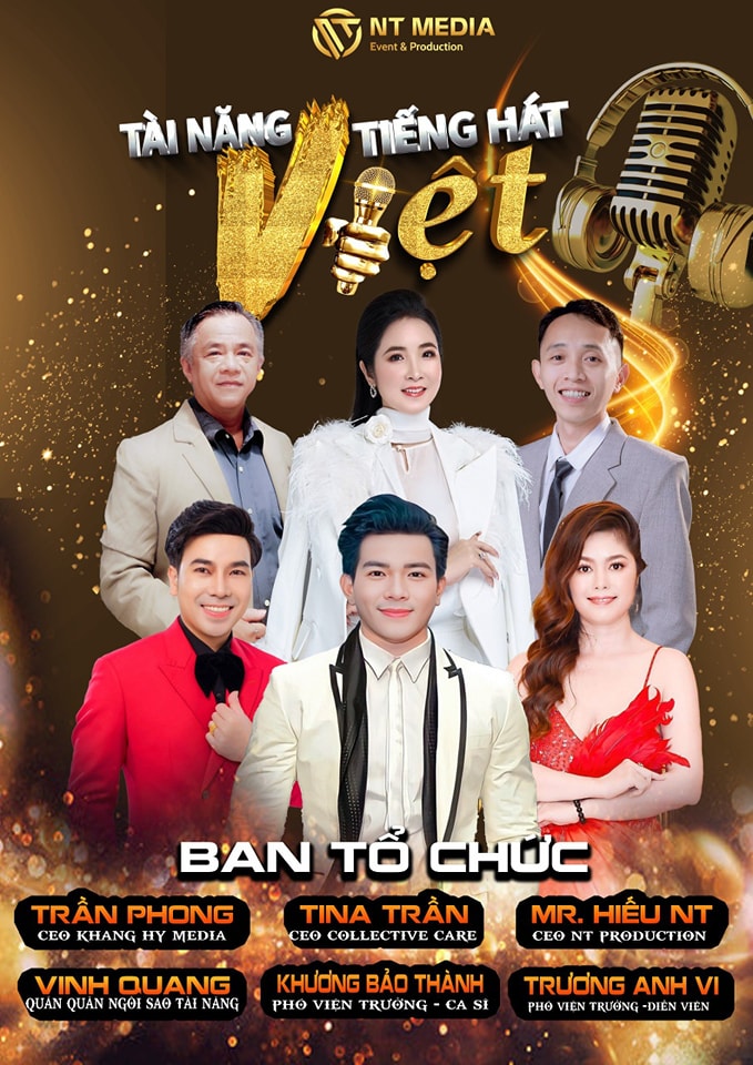 Thành phần BTC gồm: Trưởng Ban tổ chức, Chủ Tịch HĐQT Công Ty Cổ Phần CNSK Collective Care - Tina Trần; Phó Ban tổ chức - Trưởng Huấn luyện viên, Phó Viện Trưởng - Ca Sĩ - Khương Bảo Thành; Phó Ban tổ chức - Phó Viện Trưởng - Diễn Viên - Trương Anh Vi; CEO NT PRODUCTION - MR. Hiếu; CEO Khanh Hy Media - NS - Mr. Trần Phong; Quán Quân Ngôi Sao Tài Năng Việt Nam - Á Quân Ngôi Sao Tỏa Sáng - Đạo Diễn - Thạc Sỹ - MC - Vinh Quang.