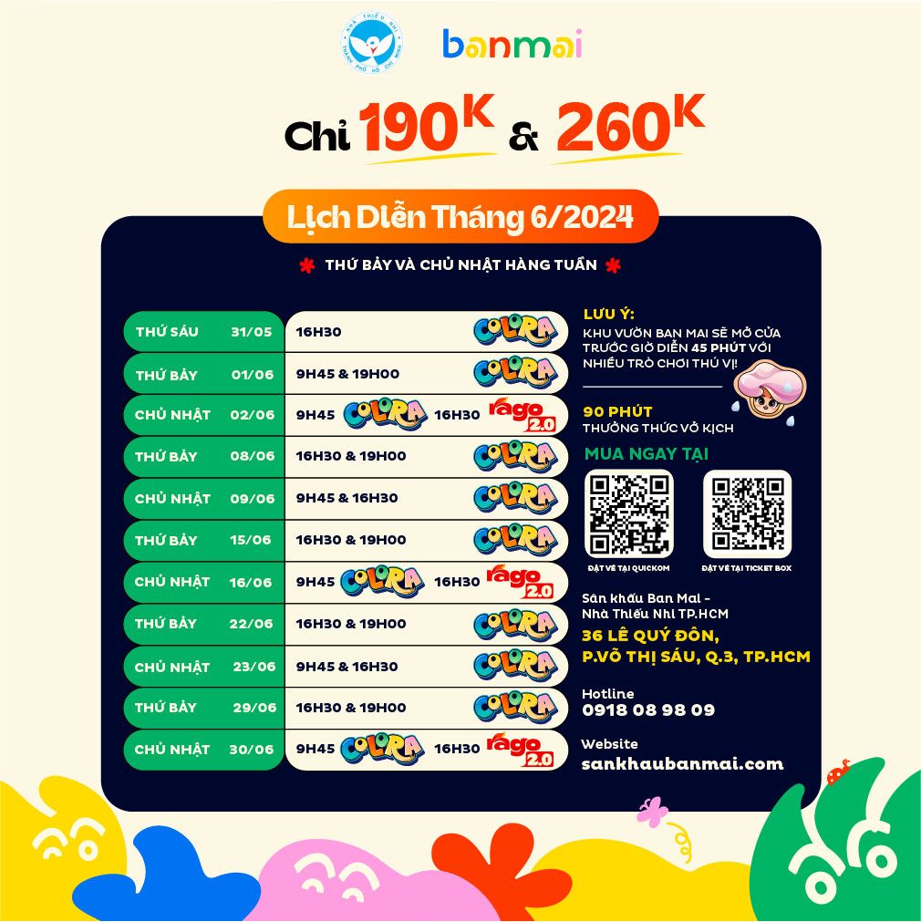 Trong suốt tháng 6, vở sẽ được sắp lịch diễn liên tục cùng với vở Rago - Hành trình đầu tiên