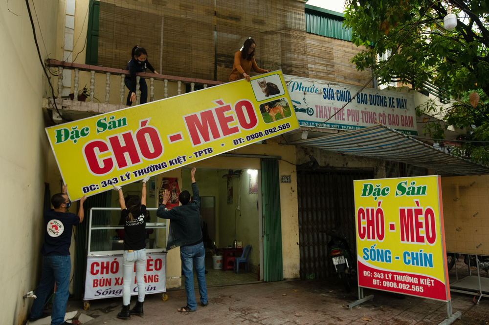 Để đóng cửa nhà hàng, giải cứu và tìm mái ấm mới cho các con vật này thành công, Tổ chức FOUR PAWS và Quỹ thay đổi vì động vật đã làm việc với các thành viên địa phương của liên minh Cats Matter Too, bao gồm Trung tâm Giải cứu vật nuôi Hà Nội (Hanoi Pet Rescue), Trạm cứu hộ động vật Paws for Compassion và Tổ chức Phúc lợi mèo Việt Nam. Nhằm chấm dứt một cách bền vững nạn buôn bán thịt chó, mèo tàn ác ở Đông Nam Á, FOUR PAWS cũng đã phát động một chiến dịch ở cấp độ quốc tế và quốc gia. Hơn một triệu người trên thế giới đã ký vào bản kiến nghị chấm dứt buôn bán thịt chó, mèo, trong đó có 200.000 người Việt Nam. “Thông qua giáo dục và hợp tác với các cơ quan có trách nhiệm và Hiệp hội Du lịch, chúng tôi muốn thúc giục các Chính phủ ban hành và thực thi luật cấm buôn bán thịt chó, mèo, bảo vệ cả động vật và sức khỏe cộng đồng. Việc đóng cửa nhà hàng này chứng tỏ tình hình đang thay đổi ở Việt Nam, ngày càng có nhiều chủ sở hữu thú cưng và người trẻ ở Việt Nam lên tiếng phản đối việc buôn bán, và ngay cả bản thân các chủ nhà hàng cũng không còn muốn tham gia vào ngành nghề kinh doanh này. Chúng tôi hy vọng việc đóng cửa nhà hàng và lò mổ này là bước khởi đầu cho các nhà hàng tiếp theo ở Việt Nam”, Tiến sĩ Karanvir Kukreja, Bác sĩ thú y và Giám đốc dự án của chiến dịch quốc tế FOUR PAWS giải thích.