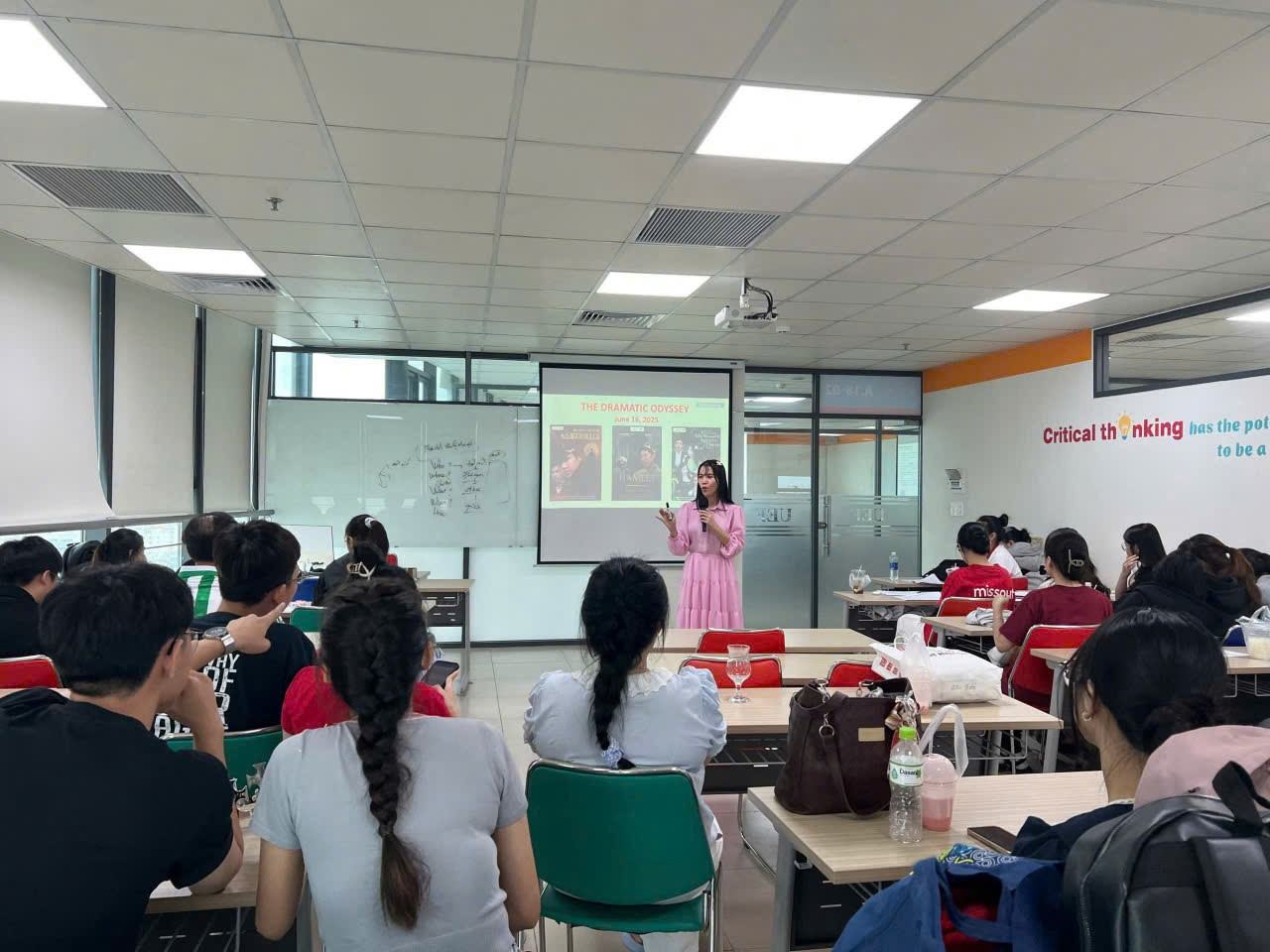 Thay vì chỉ đọc và phân tích tác phẩm qua sách vở, sinh viên được hướng dẫn hóa thân vào các nhân vật trong kịch cổ điển, đặc biệt là những vở kinh điển của đại văn hào William Shakespeare. Phương pháp giảng dạy mang tính sân khấu hóa này được thực hiện theo định hướng đổi mới của Tiến sĩ Nhan Cẩm Trí – Phó hiệu trưởng nhà trường, nhằm khơi gợi cảm xúc và giúp sinh viên "sống cùng văn học".