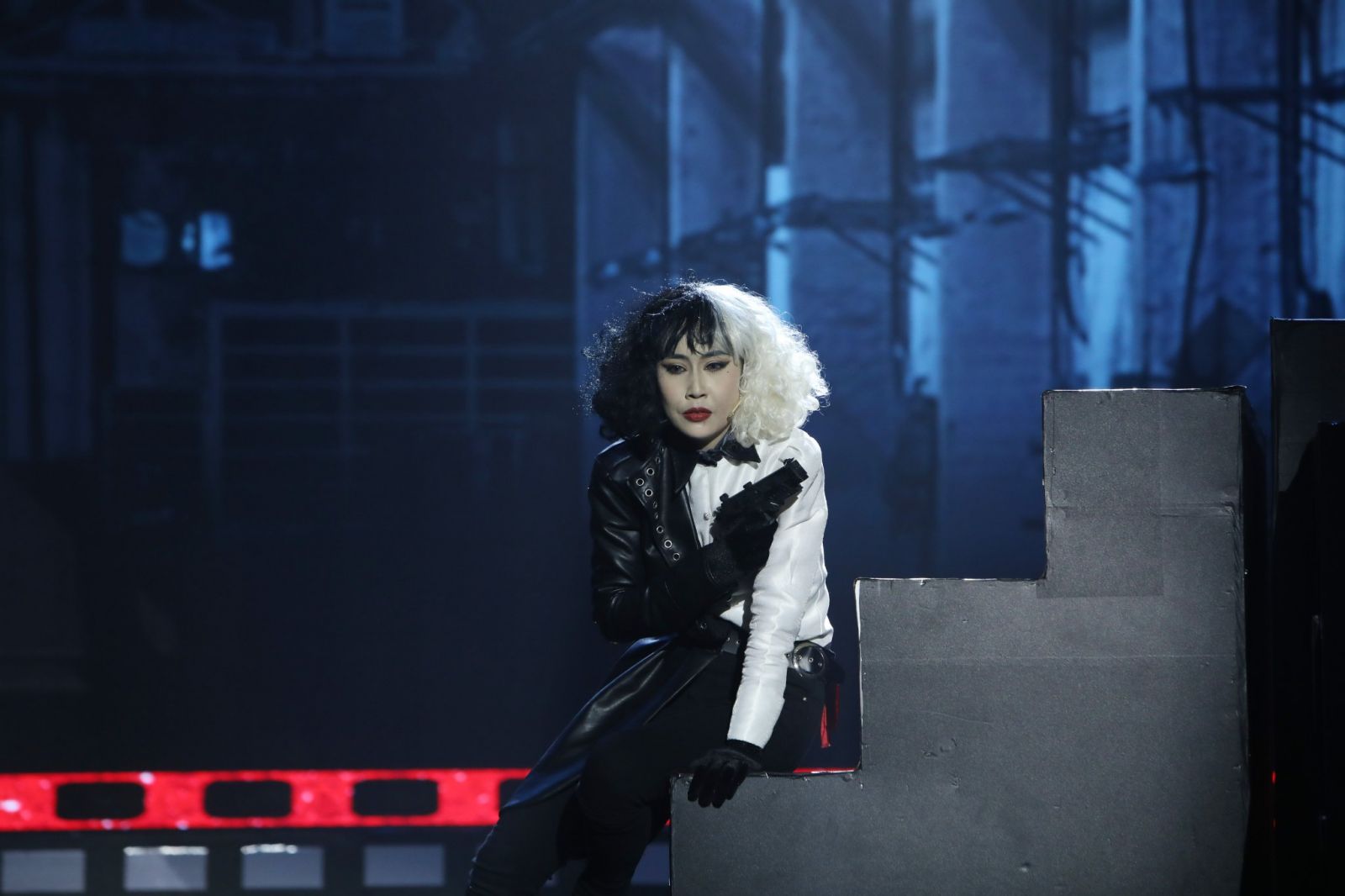 (ĐSVH) Trương Phương - thí sinh mở màn cho trận đấu tuần này - gây ấn tượng bởi cách hóa trang hắc-bạch trái ngược, kết hợp cùng bối cảnh, đem đến vẻ bí ẩn và điên rồ.